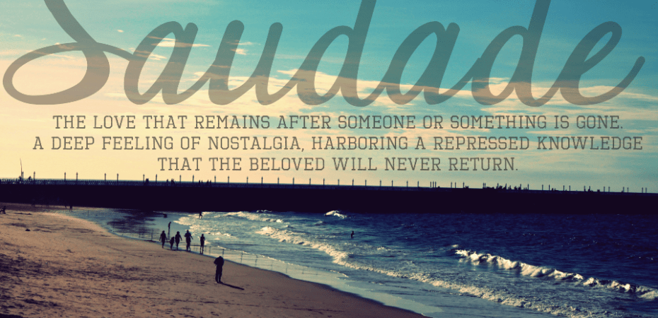 “Saudade is a Portuguese and Galician word for a feeling of nostalgic longing for something or someone that one was fond of and which has been lost. It often carries a fatalist tone and a repressed knowledge that the object of longing might never really return. It was once described as “the love that remains” or “the love that stays” after someone is gone.”