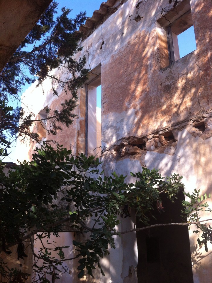 Lately I go for a walk in the mornings to enjoy some fresh air before it warms up. I love walking in the hills only by myself, or together with my friend, and pass by some nice casas de payés, grape trees and end up having great views at the little d’Espartar islands. The other day I was alone, it was already warming up, and all of a sudden I saw a very interesting old ruin. I decided to go in to take some pictures (luckily this time I had my phone with me..). It must be a very old house with multiple rooms, at least what’s left of it. If these walls could talk… What would I hear? A lost home.. lost history. Who lived here? A family? When? I think at least a century ago. I would love to know. On the island you see more ruins like this. When you look at the stones, the way it was built, you see it’s historical. This ruined fortress.. I wish there is anyone who could tell me more about it. Somebody made a fire in the ruin. Two burnt mattresses is the only furniture in the room that must have been the living space.