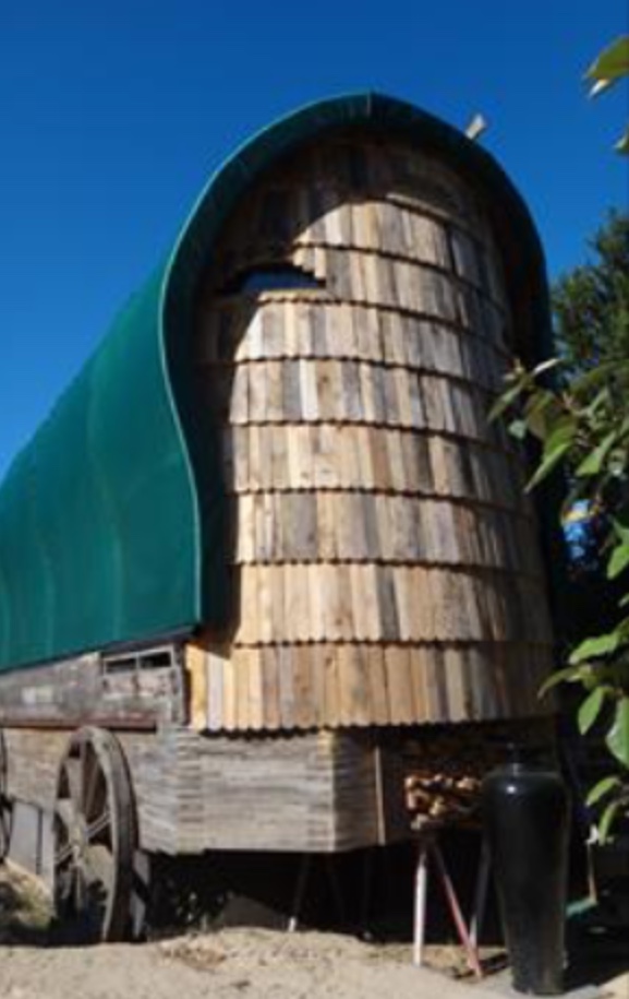Dorus begon in Casita Verde, alweer een aantal jaren terug, aan het bouwen van een tiny house in de vorm van een wild west wagon. Een ecologisch tiny house op zonne-energie met eigen keuken, eco toilet en douche dat helemaal zelf voorzienend is. De onderkant van het huisje bevat een groot waterreservoir dat al het regenwater opvangt. Hij is het niet gaan bouwen met de bedoeling om er samen met mij, onze twee katten incluis, te gaan wonen. Nee, het zou puur een experiment en showcase voor Casita Verde worden. Maar plannen zijn er om gewijzigd te worden. Afgelopen jaar hebben we besloten dat we de stap wagen en het zelf gaan bewonen, zodat we kunnen ontdekken of dit sustainable life echt voor ons is. Een wel heel aantrekkelijk motief is dat we dan geen huurkosten en energie- en waterrekeningen meer hebben.