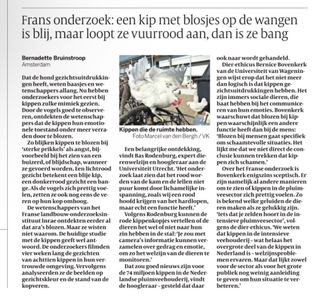 Via X – het is zeker nog wel ergens goed voor – stuitte ik op dit bericht uit De Volkskrant of was het Trouw? Later kreeg ik het toegestuurd van een vriendin (zij heeft ook kippen):